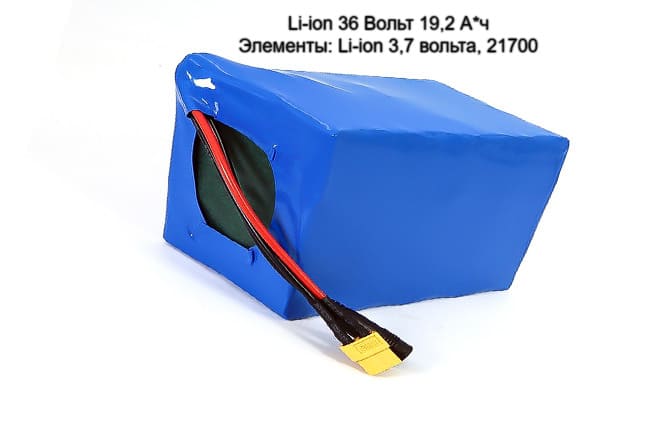 Предлагаем качественный Аккумулятор Li-ion 36v 19,2 Ah, собран на основе аккумуляторов Li-ion 3,7 вольта, форм фактор 21700 , корпус в виде текстолит, термоусадка, номинальное рабочее напряжение этого аккумулятора электровелосипеда 36 V, а напряжение полностью заряженного аккумулятора составляет 42 V, емкость в А*ч \ Вт*ч составляет - 19,2А*ч \ Вт*ч - 691 Вт*ч, аккумулятор оснащен разъемом XT-60 - , рекомендуемая сила тока от 2-5 Ампера, среднее время полной зарядки этого АКБ составляет примерно ~ 10 часов (при заряде 2 Амперами).