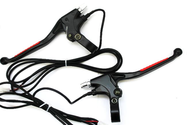Контактные тормозные ручки(пара) для электровелосипеда, электросамоката, электроскутера. Ручки оборудованы концевиками, которые можно использовать для включения стоп сигнала, отключения мотора при торможении или активации рекуперации.
