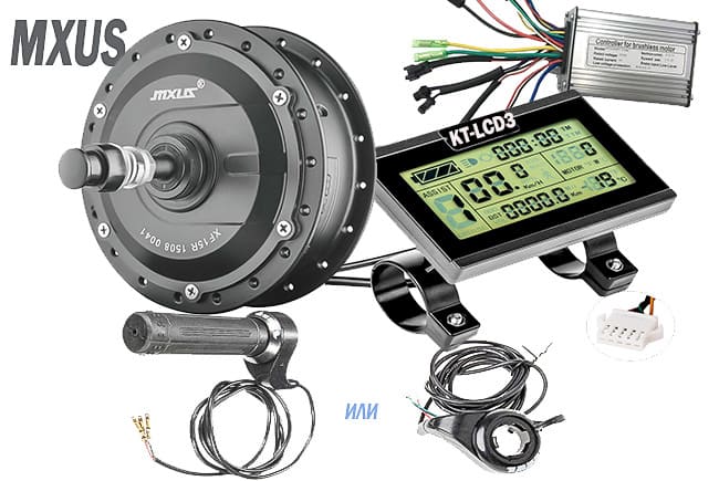 Комплект: мотор MXUS XF15R \ 500W, установка заднее колесо, контроллер KT 48В 500Вт 20/22/25А, дисплей KT LCD-3 тип LCD дисплей панель управления, управление ручка газа или курок на выбор