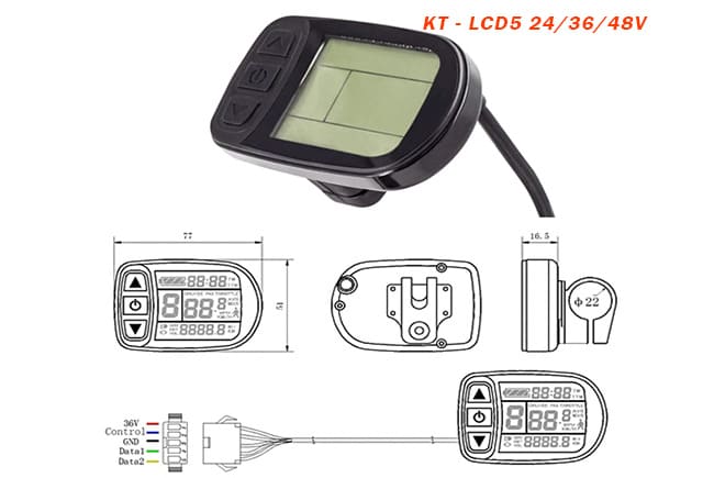 Качественный Многофункциональный дисплей KT LCD-5 24/36/48V компьютер, имеет многочисленные гибкие настройки, на дисплее отображается вся необходимая информация о текущих характеристиках электровелосипеда. Дисплей оснащён удобным выносным управлением PAS assistant.