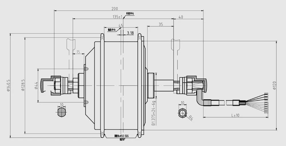 Мотор под трещотку устанавливается на зад и имеет расстояние между дропаутами 135мм. Он рассчитан на скорость 25-35км/час в зависимости от напряжения, диаметра обода и нагрузки. Имеется крепление под дисковый тормоз.