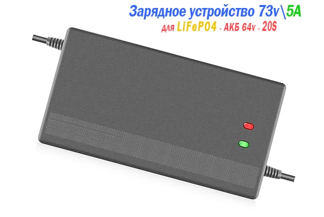 Зарядное устройство для LiFePO4, LFP . Это зарядное устройство имеет выходное напряжение 73 V с током заряда 5A подходит для сборок LiFePO4 - 20S. Стоимость: Зарядное устройство для АКБ LiFePo4 20S 73v на данный момент 2200 руб. Принцип заряда CC/CV