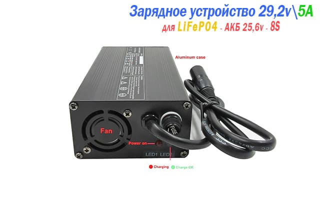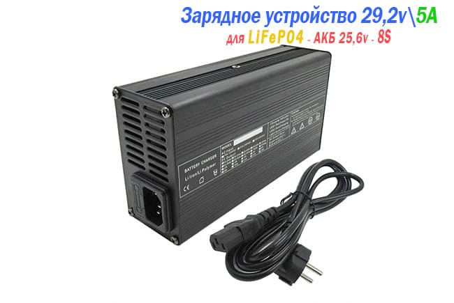 Зарядное устройство для LiFePO4, LFP . Это зарядное устройство имеет выходное напряжение 29,2 V с током заряда 5A подходит для сборок LiFePO4 - 8S. Стоимость: Зарядное устройство для АКБ LiFePo4 8S 29,2v на данный момент 2806 руб. Принцип заряда CC/CV