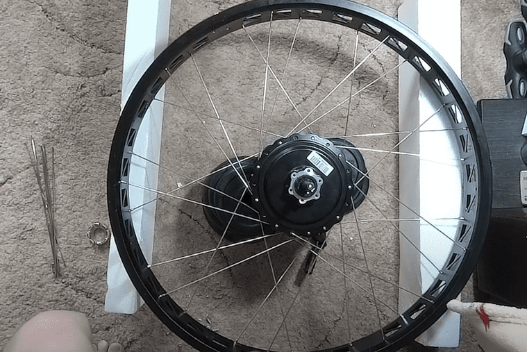 Самостоятельная сборка электровелосипеда на базе китайского фэтбайка - этап - Заспицовка мотора bafang в обод фэтбайка