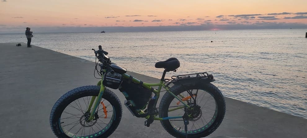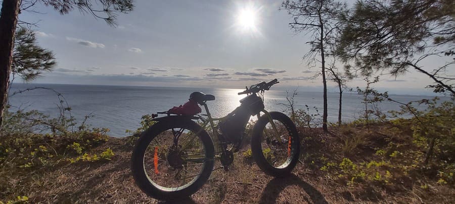 На следующий день я уже собрал электрофэтбайк и немного прокатился на ближайшую гору, байк показал себя отлично и тянул в гору очень бодро, а к вечеру мы уже встречали закат на море.