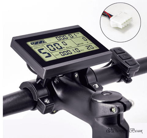 LCD дисплей неотъемлемая составляющая электровелосипеда это как приборная панель в автомобиле на котором отображаются все необходимые данные о состоянии заряда аккумулятора, текущей скорости, пробег, общий пробег и другая необходимая информация.