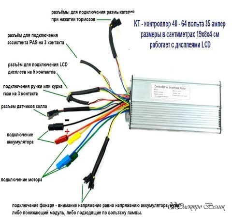 Контролёры я выбираю серии КТ так как только к ним подходят компьютеры – дисплеи серии LCD они есть разнообразных видов LED дисплеи недорогие и малоинформативные с ними не получится настроить контроллер под ваши нужды, а вот с дисплеями LCD уже все лучше они имеют информативный жидкокристаллический экран в котором отображены все необходимые данные (скорость, потребление, пройдённый маршрут, общий пробег и многое другое) по сути это небольшой компьютер с множеством настроек про настройки LCD дисплеев вы можете ознакомится здесь.