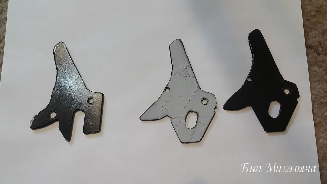 После примерки самостоятельно изготовленные усилители дропаутов были обезжирены и покрашены в чёрный цвет краской для автомобильных суппортов.