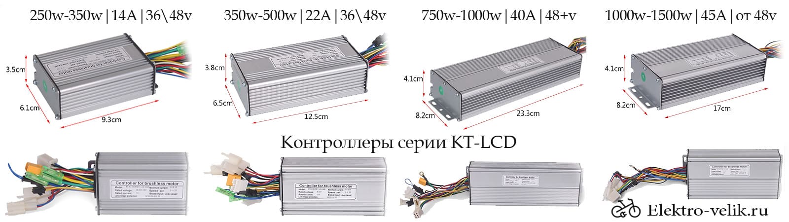 Контроллер следует выбирать согласно характеристикам мотора и аккумулятора – примерно можно распределить так для моторов до 350 ватт потребуется контроллер 24-48 вольт на 15 ампер нагрузки, для моторов 500 – 750 ватт нужен контроллер 48 + вольт на 25 – 40 ампер лучше брать с запасом, например, на 30 или 35 ампер, а для редукторных моторов 1000 ватт контроллер нужен от 30 ампер, но опять-таки лучше брать с небольшим запасом 35 + ампер.