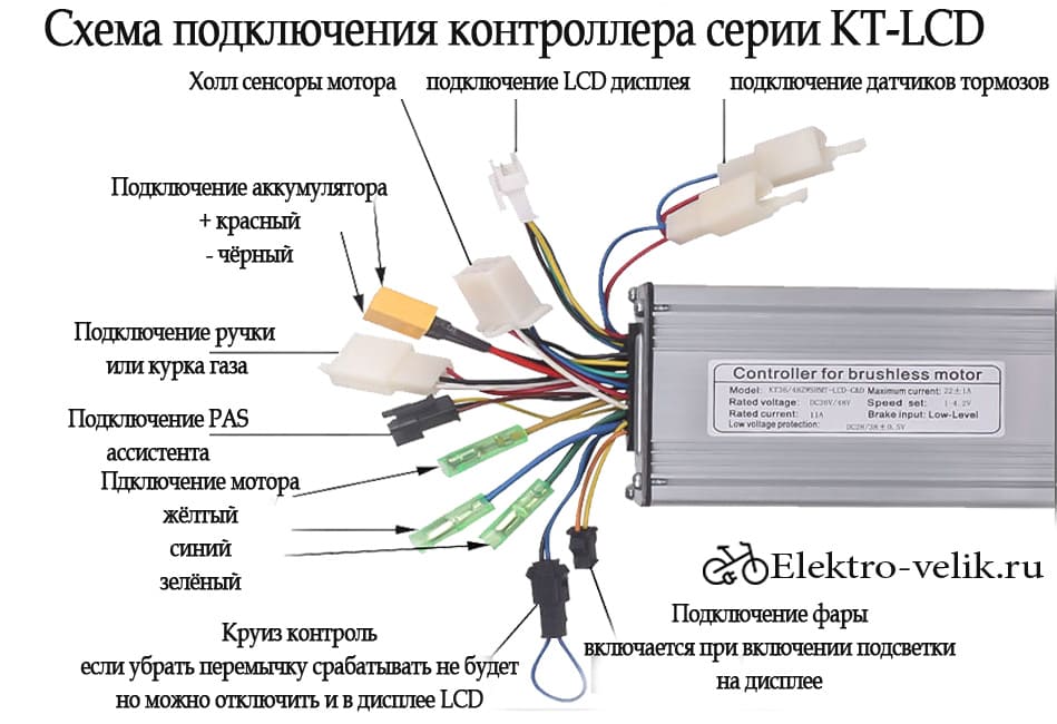 Контроллер — это компонент без которого не обойтись при сборке электровелосипеда, он получает сигналы от элементов управления электровелосипеда и передаёт мотору команды на запуск подавая ту мощность, которая необходима в этот момент.