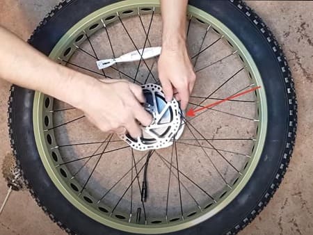 Предварительно тормозной ротор надо обезжирить, и учесть направление и правильность установки, закручиваю крепёжные винты и не забываю про фиксатор резьбы, тормоза — это важный элемент.
