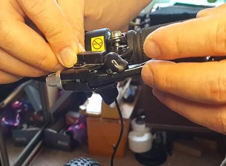 Установил фару, которая работает от понижающего модуля в это место. Установил один датчик на ручки тормозов, магнит закрепляю на термоклей и для страховки на пластиковый хомут.