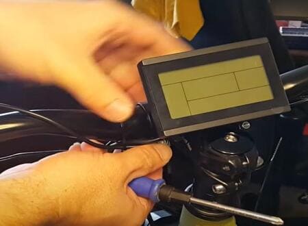 Теперь можно закрепить дисплей. Так же решил заменить грипсы на более современные, почти такие же стоят на фэтбайке стелс агрессор. Настроил и зафиксировал блок кнопок.