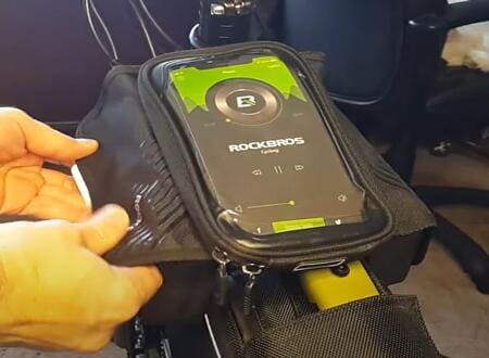 Так же купил вот такую сумку на раму для всякой мелочёвки, на ней есть чехол для смартфона, который можно использовать, например, дождливую погоду, смартфон влезает легко, сенсор реагирует хорошо.