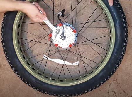 Гайка кассеты закручивается по часовой стрелке, а подтягиваю при помощи съёмника с прорезью, затягиваю с небольшим усилием. Вот теперь мотор колесо полностью готово к установке.
