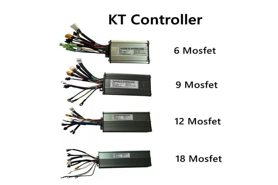 Существует несколько типов контроллеров, и они в основном различаются по мощности и количеству мосфетов, это контроллеры на 6 мосфетов и в зависимости от начинки адекватно могут работать с моторами мощностью 250 - 500 ватт, контроллеры на 9 мосфетов эффективно могут работать с моторами 500 750 ватт, на 12 мосфетов безопасно можно эксплуатировать моторы 750 1000 ватт, а на 18 мосфетов можно поставить мотор до 3 киловатт, в целом у всех контроллеров есть запас плюс 10-15 процентов, так же все они могут работать в достаточно широком диапазоне по вольтажу, от 36 до 63 вольт, а в некоторых вариантах контроллеры выполнены так что бы можно было ставить 72х вольтовый аккумулятор.