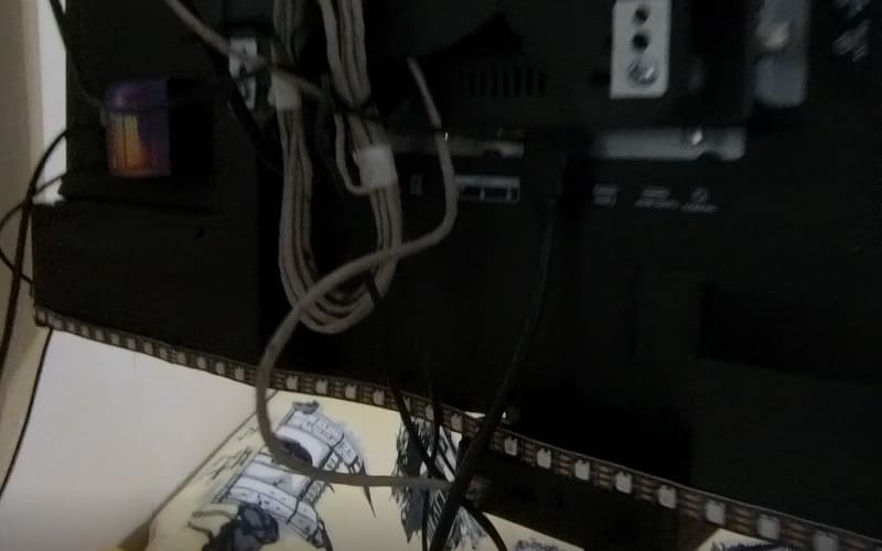Всё телевизор повесил обратно, здесь лента немного провисает, но ничего страшного это ведь временный вариант…. Да все вот так сильно временно))) но в целом смотрится аккуратно на мой взгляд…