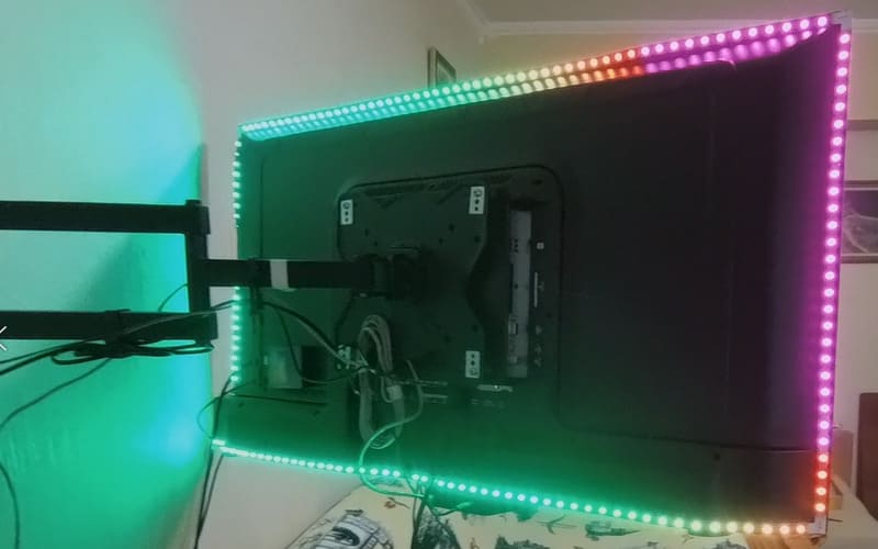 В инструкции показано как закрепить ленту на монитор или телевизор – хочу уточнить этот момент при установке на телевизор подсветка будет работать только если телевизор включен как монитор через компьютер и программу амбибокс или призматик вроде бы есть несколько решений для работы подсветки на телевизоре, в котором есть обеспечение андройд но судя по отзывам работает не стабильно.