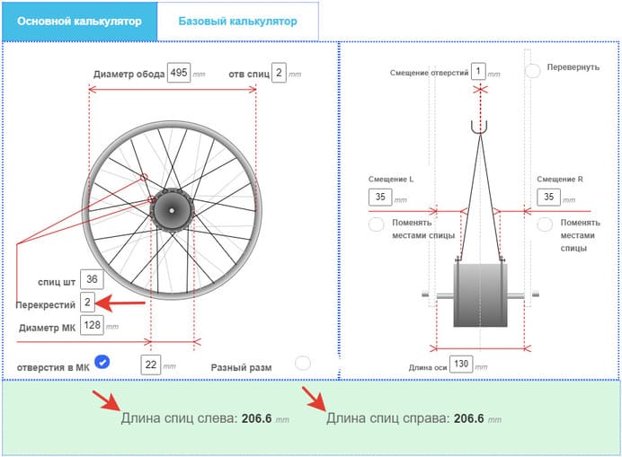 Результат длины спиц по моим размерам такой: