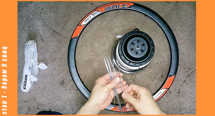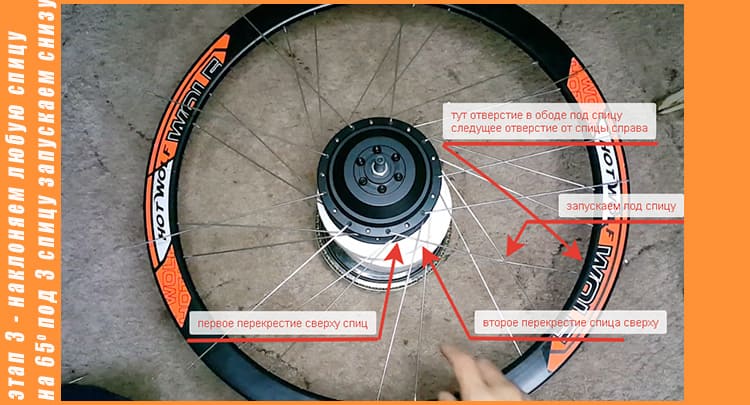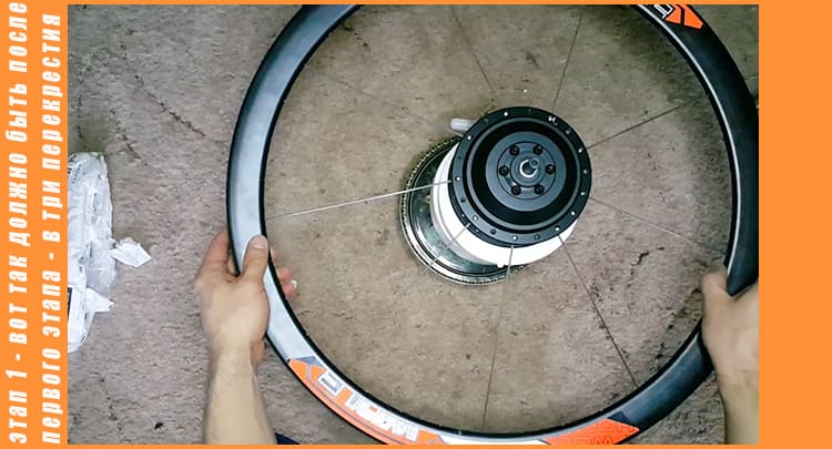 Спицуем мотор в колесо в три перекрестия: